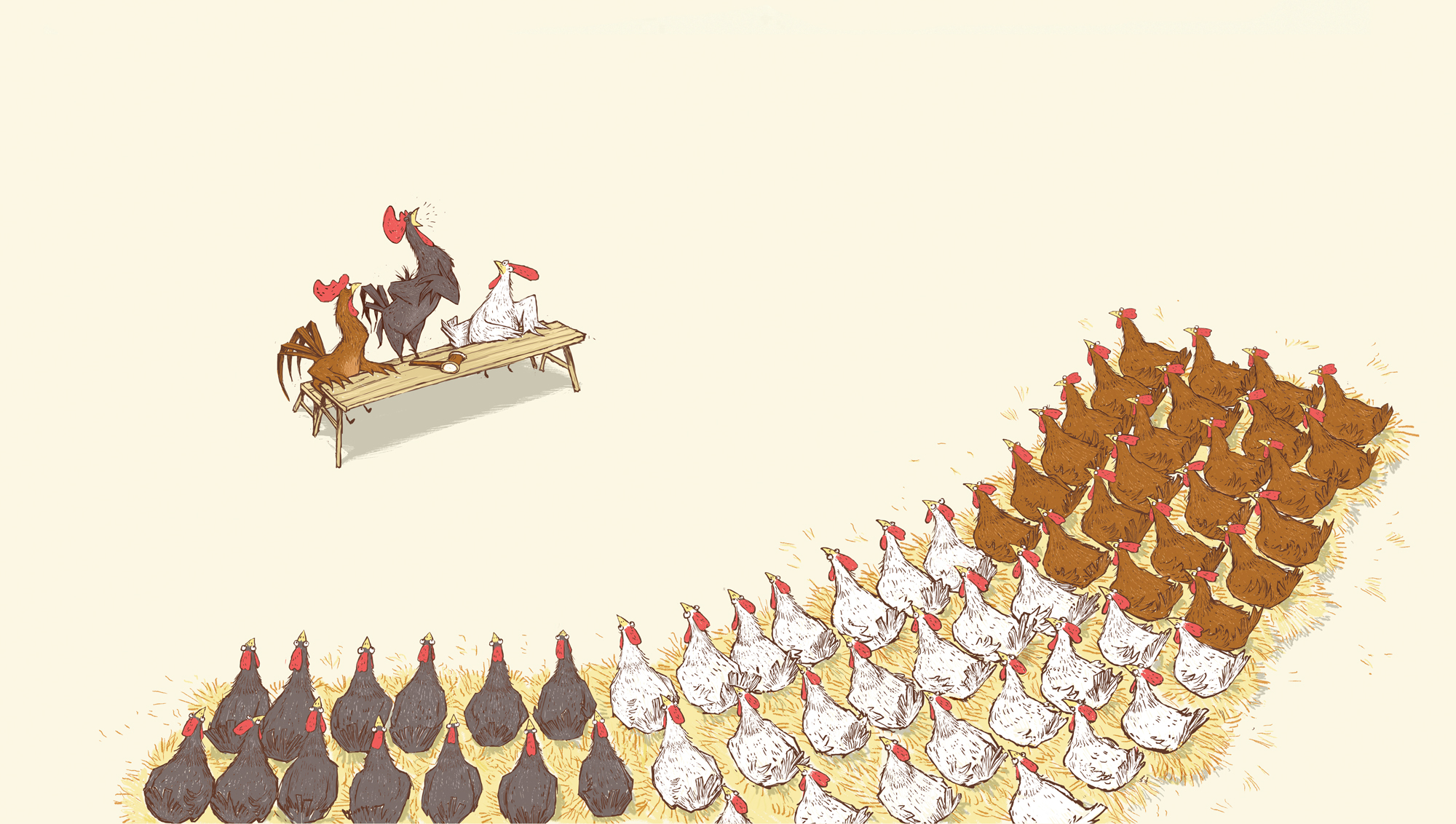 De kippen moeten in actie komen en de twee vermisten zo snel mogelijk terugvinden. Maar hoe gaan ze dat aanpakken? Delen ze zichzelf op in groepen, kleur bij kleur natuurlijk … of toch niet? En wie neemt de leiding, is dat vanzelfsprekend een van de twee overgebleven hanen? Of wordt degene die het hardste kakelt of het mooiste kraait de baas? Na veel gekissebis komt het veelkleurige pluimvee tot een oplossing die voor iedereen werkt. Eindelijk kunnen ze hun zoektocht beginnen. Zijn ze nog op tijd om Marcel en Gertrude te redden?